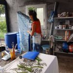 Aujourd’hui, je suis artisan teinturière. Je cueille des plantes, j’en extrait la couleur et j’imprime du tissu. Avec les tissus que je crée je confectionne des foulards, des sacs, des coussins et autres accessoires et objets déco textiles. J’ai déménagé à l’île de la Réunion, où des plantes fabuleuses poussent toute l’année. Je travaille chez moi, dans mon atelier, je vais cueillir mes plantes à pied ou à vélo (ça me fait une promenade) et quand je prends une pause café je regarde l’océan Indien. Je ne travaille (presque) que quand mes filles sont à l’école et je prends le max de temps libre le mercredi, pendant les weekends et vacances scolaires.